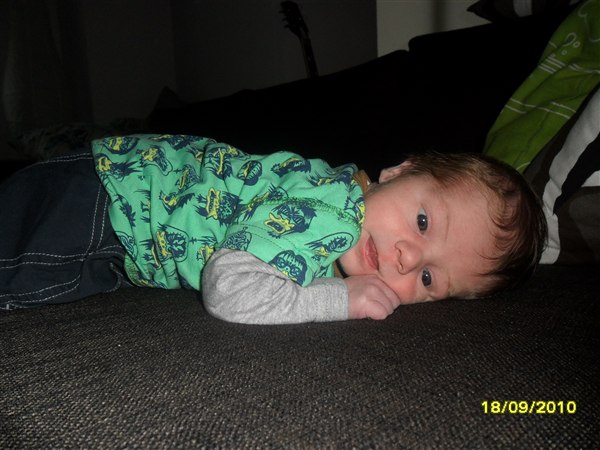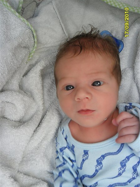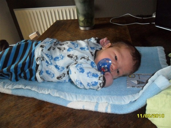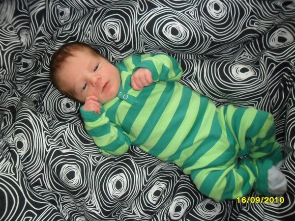 Så vil jeg gerne vise Adam frem! Han er allerede 2 uger, vågner to gange om natten og er meget opmærksom om dagen. Han kan løfte hovedet højt allerede og har ifølge sundhedsplejersken en utrolig god øjenkontakt - så forældrene er selvfølgelig bare stolte