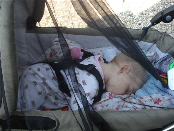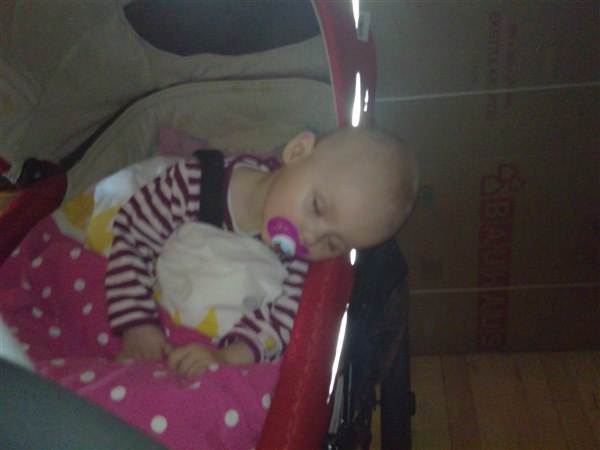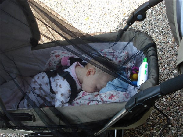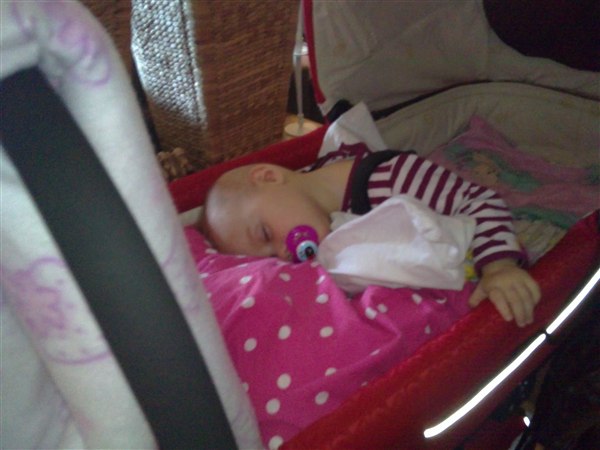 Ja jeg lagde hende ud i barnevognen som jeg plejer, men sove gad hun ikke, så puttede hende godt ned og svøbte dynen om hende..