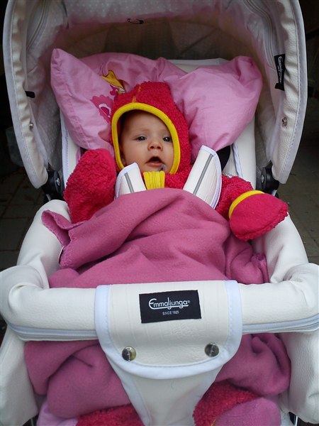 Malou er ligeglad om det er varmt eller koldt... bare det løber stærkt nok! Jeg ammer hende dog også, så hvis det går HELT galt må jeg jo hive dem frem.