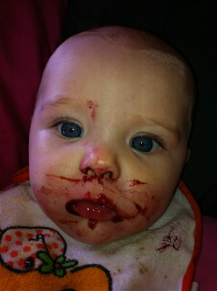 Nøj hvor er hun køn. Også med syltetøj i hele ansigtet Virkelig flotte øjne hun har!