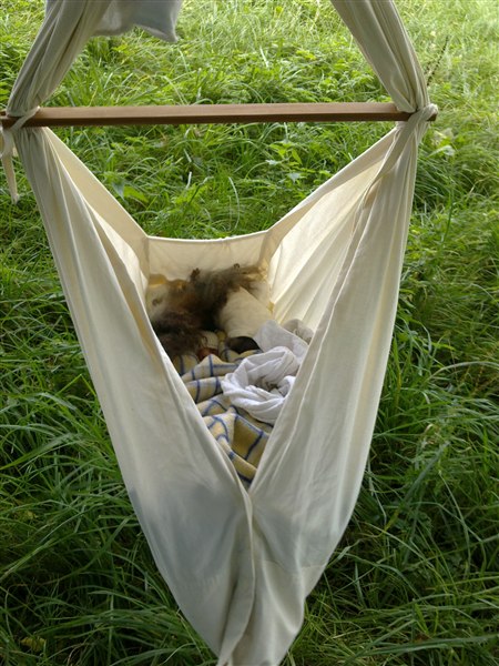 YAY... Det er bare for fedt... Vi har jo lavet ALT muligt, dårligt været hjemme mens hun har været her, lille skønne Frigg. Eller sådan føltes det i hvertfald. Så idag, er jeg rigtig alene hjemme, for første gang. Jeg havde besluttet at lave havearbejde idag, så jeg havde også besluttet at Frigg skulle prøve at sove i slyngevuggen UDENFOR for første gang... Og naii, hvor er det bare skønt altså!!!. Jeg puttede hende med dejlig skind og tæppe og hue på og hun har bare hygget sig altså. Sovet i 3 timer og jeg har knoklet rundt og ordnet brænde og sager... SKøøøøønt...