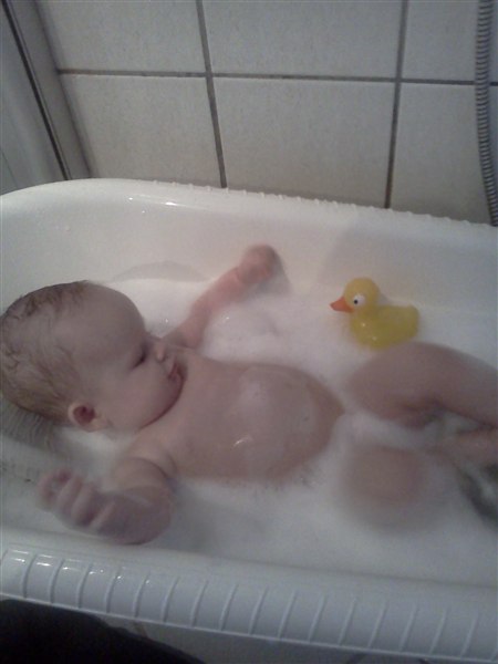 Ja han hygger sig virkelig, men det gør han nu altid når han bader