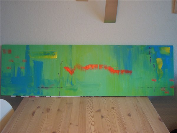 35x120 mener jeg. Jeg maler når jeg har lyst, så det varierer meget. Jeg har aldrig fået undervisning, jeg hygger mig bare med det.