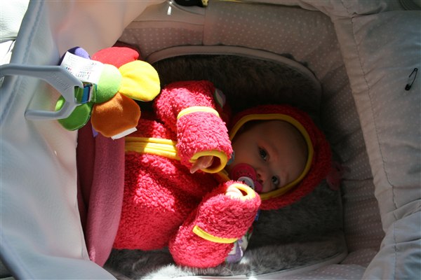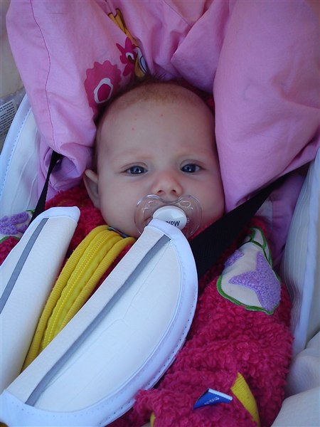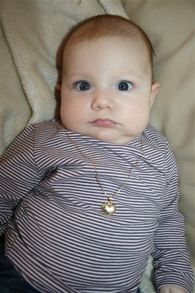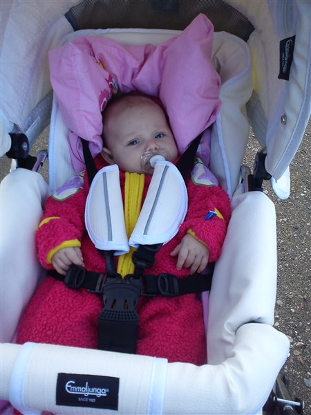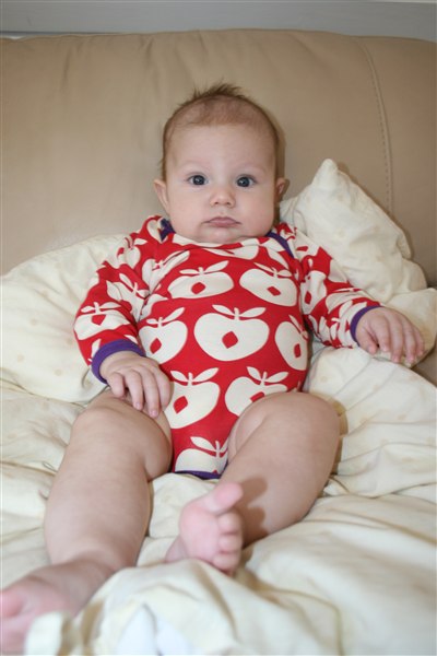 Vejret kunne godt have været bedre her på hendes 4 måneders fødselsdag, vi døjer i øjeblikket med hoste og slim i halsen og blanke blanke øjne - og det er altså temmelig svært at forstå i en alder af blot 4 måneder.