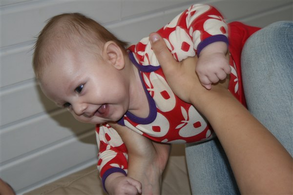 Hendes grineflip er hun igang med at udvikle og det er så fantastisk at være en del af. Hun får desværre hikke af det, jeg tror hun håndterer luften forkert nede i maven når hun prøver at grine?