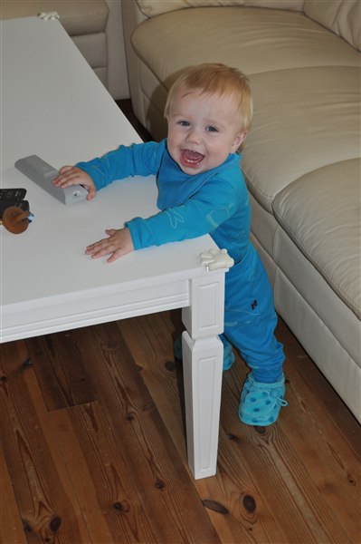 10 kg og 78 cm, 6 tænder, kravler og stiller sig op over det hele..