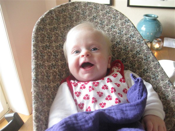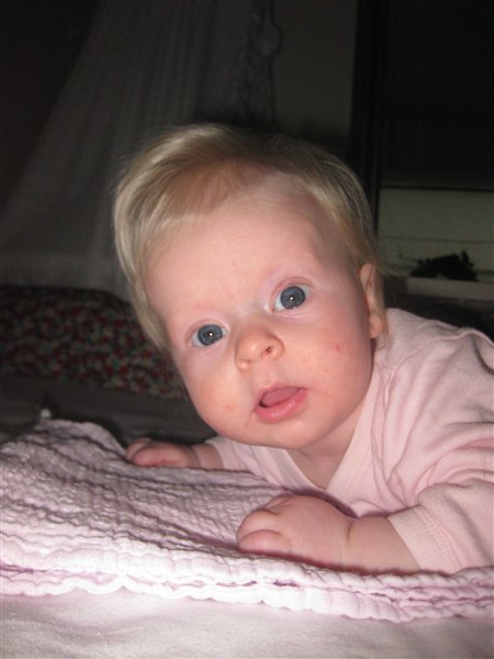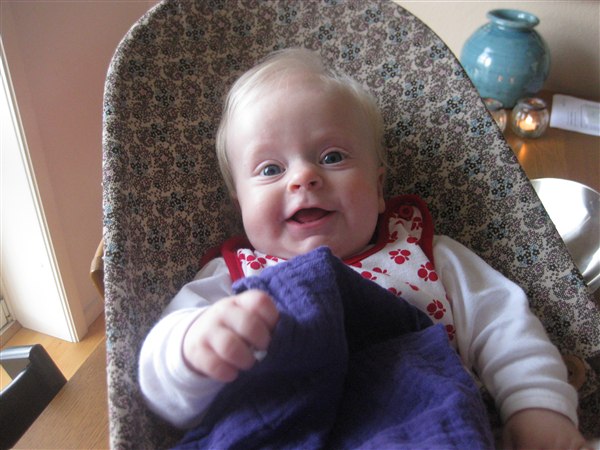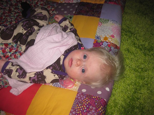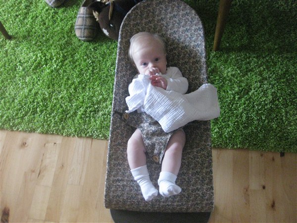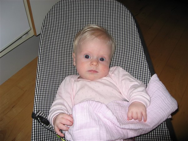Malou stortrives, og er stadig det nemmeste barn jeg nogensinde har mødt! Hun sover om natten og tager også gerne 3-4 lure om dagen på ca. 1 time af gangen.. Hun er kun sur når hun er rigtig sulten, så det er skønt!! Hun snakker rigtig meget nu, og tager gerne en rulletur en gang i mellem. Fødderne har hun opdaget nu. Livet er skønt!