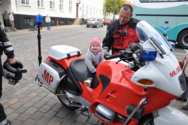 Til gengæld fik Dicte lov at sidde på en MP-motorcykel og det fik vi et billede af.