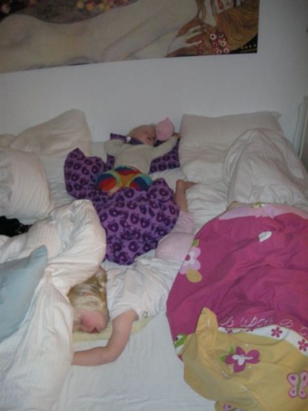 Ida og Anna tog lige en nat i mors og fars seng, på kryds og tværs.