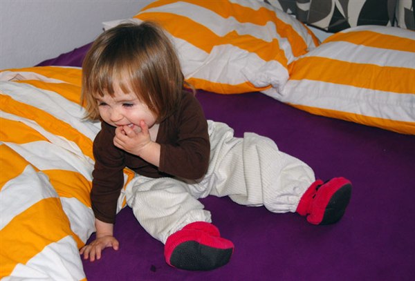 her er de bukser jeg syede i går (på lilja). de er lidt store men sidder ellers fint