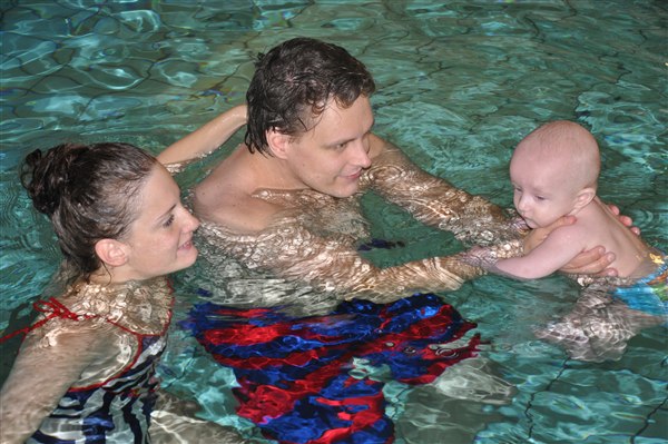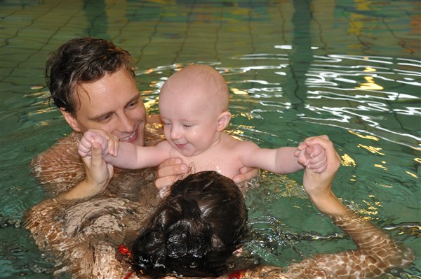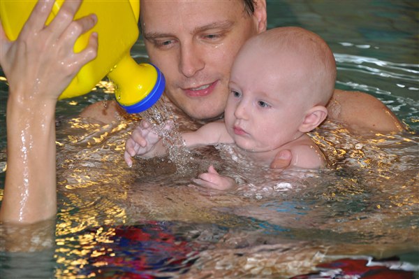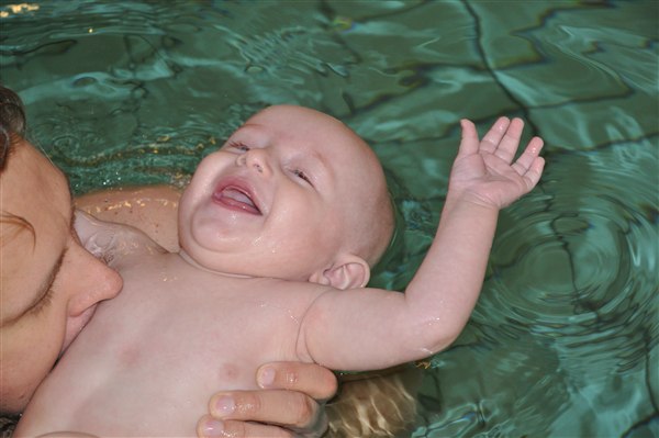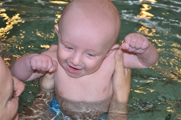 Det er simpelthen så brandhyggeligt at plaske rundt sammen og han kan både dykke og alt muligt nu, og bliver ikke det mindste bange. Og så bruger instruktørerne ham gerne som stuntbaby fordi han er så tryg ved vand - så vi er (fuldstændigt uproportionelt) stolte