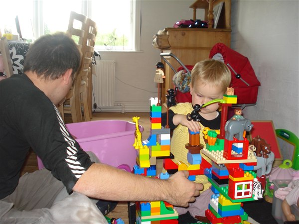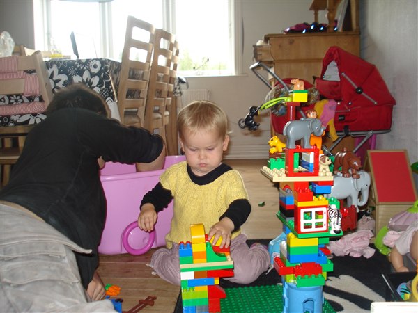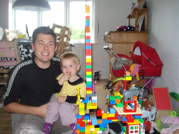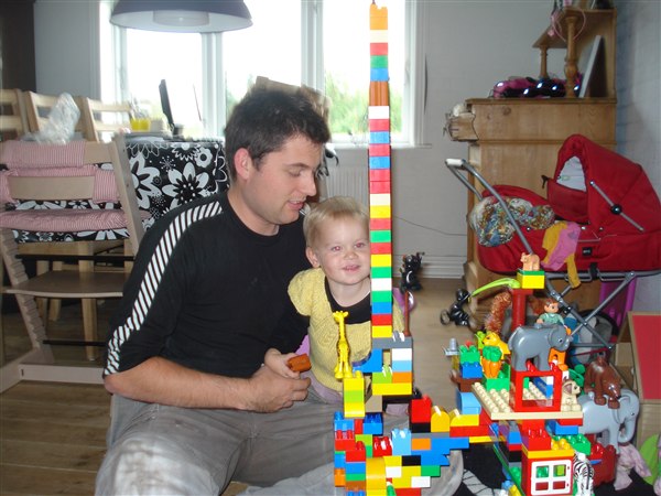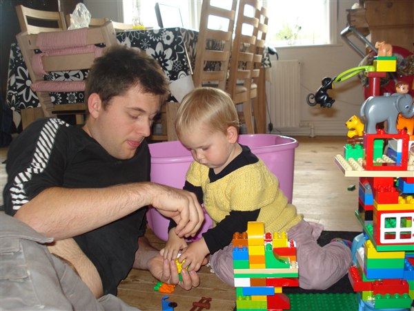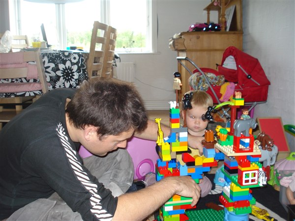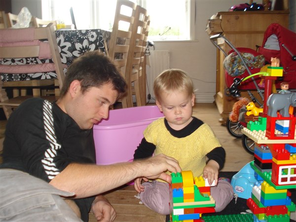 Så har far og datter haft gang i byggeriet her i eftermiddags - hvem der var mest koncentreret og optaget af det kan I jo selv vurdere