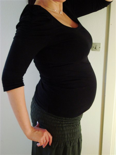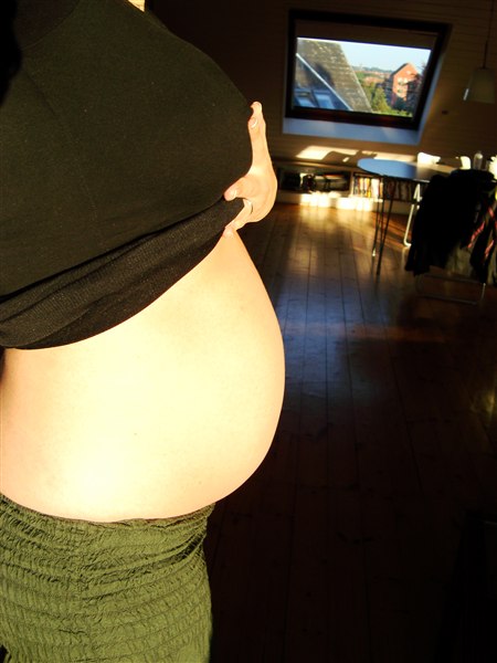 Jeg var ca. i uge 20 da de andre også kunne se at jeg var gravid... og ikke bare fed!