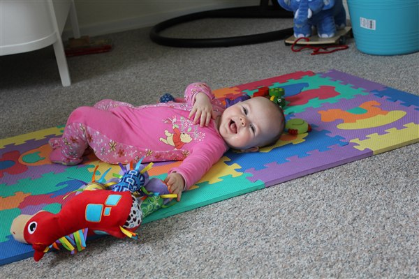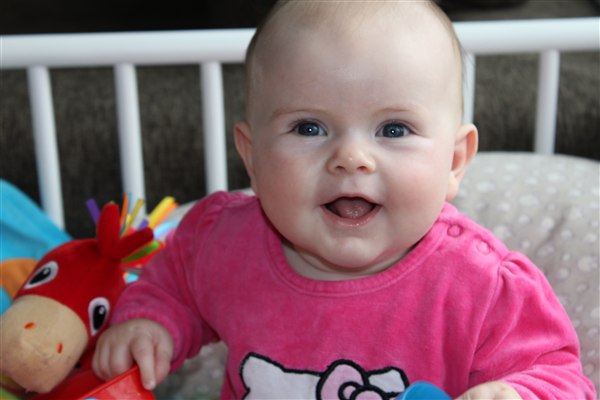 Det går bare SÅ godt med Ida. Hun trives og er en rigtig glad og smilede pige! Hun elsker at være sammen med mor og far og Calle-hunden er uden tvivl den bedste underholdning, der findes...