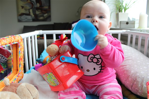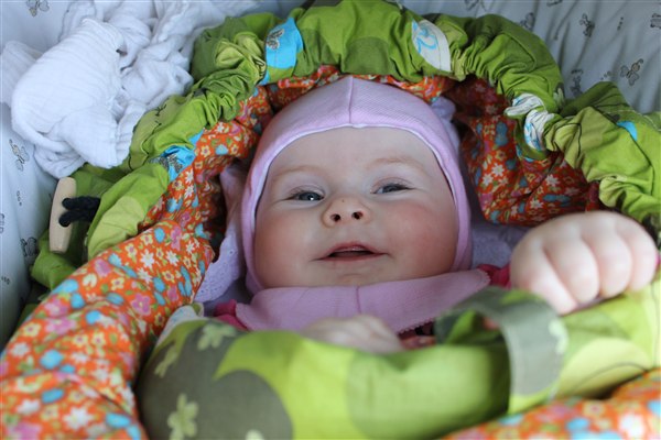 Om dagen har hun ikke rigtig nogen fast rutine - hun har haft en lang periode, hvor hun har sovet rigtig dårligt om dagen - korte lure, hvor hun ofte vågner! Nu har vi så investeret i en VOKSI og hun sover i den på 2. dagen idag og det er bare en succes - hun elsker at putte i den!!!