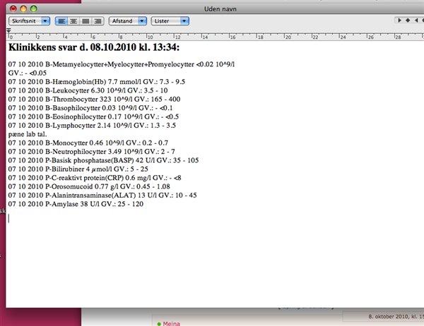 07 10 2010 B-Leukocytter 6.30 10^9/l GV.: 3.5 - 10