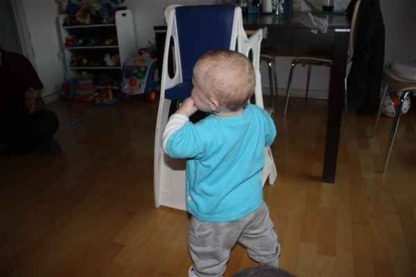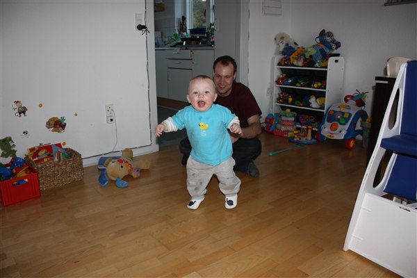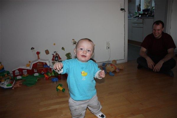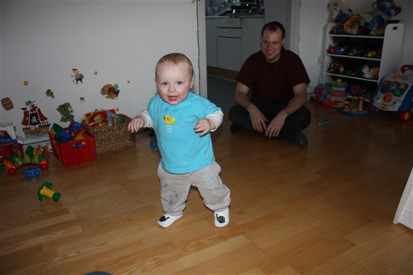 hvor er han dejlig de er så stolte, når de tar deres første små skridt!