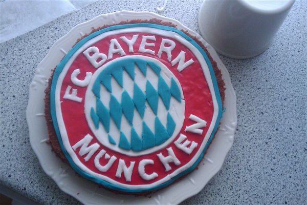 Kagen til svigerfar og min kæreste som er brændende fans af FC Bayern München :-)Ufattelig grimt skåret ud, men trøster mig selv med at den er skåret ud med en alm. køkkenkniv!
