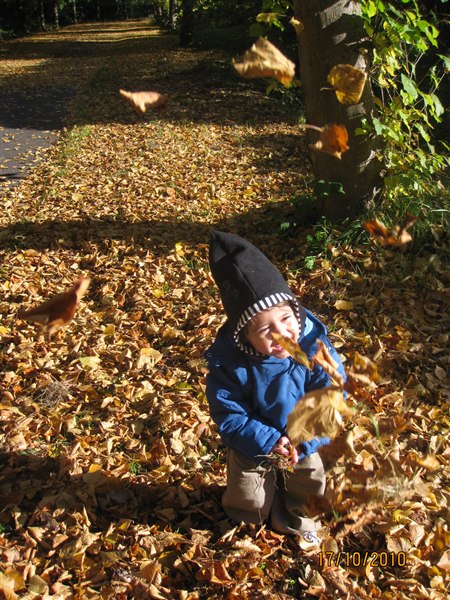 Nåhhhhh................især det sidste billede, hvor Isaac koncenteret forsøger at putte et blad ned i et hul, er jeg vild med. Den smukke knægt.