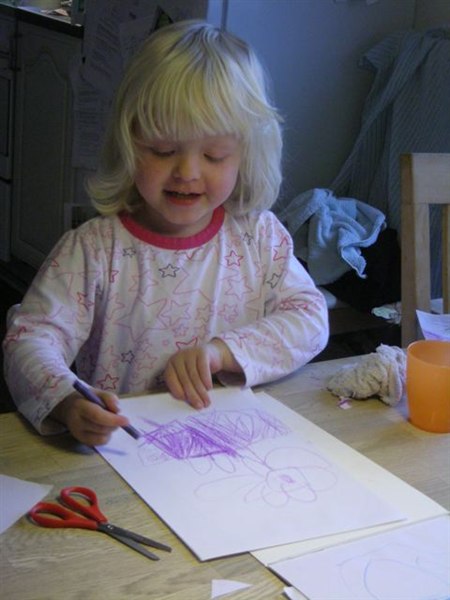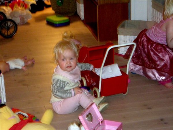 Vi har tilbragt et par timer i svømmehallen i dag, da der var truende regnvejrsskyer over vores by i dag. Fik ikke taget billeder af det, men af pigerne i går, hvor de legede i stuen.