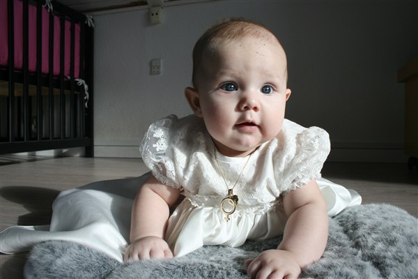 Men ved 5 mdrs undersøgelsen d 23 september, vejede hun 7300 g og 66 lang. Så ja, en lille tyk prop. Eelsker det