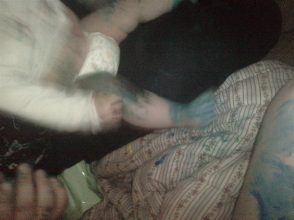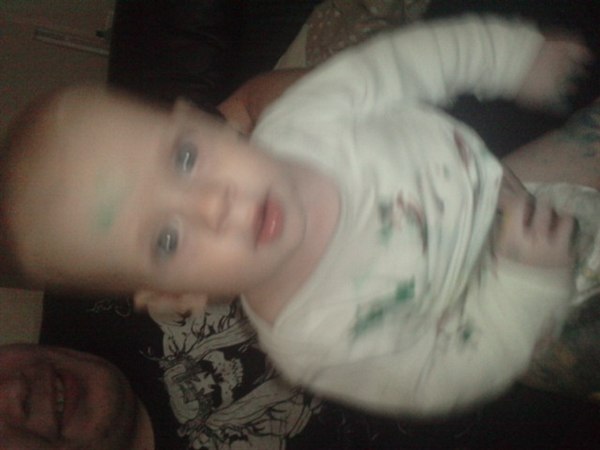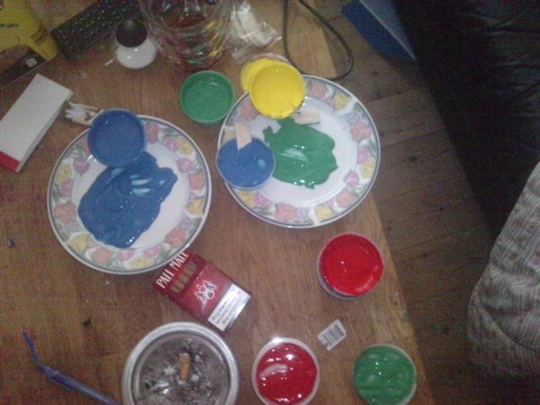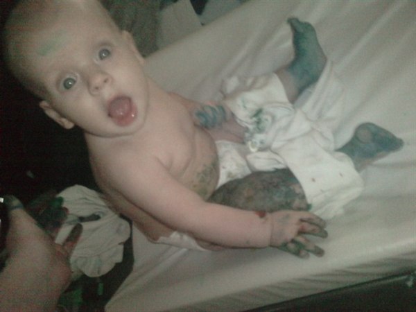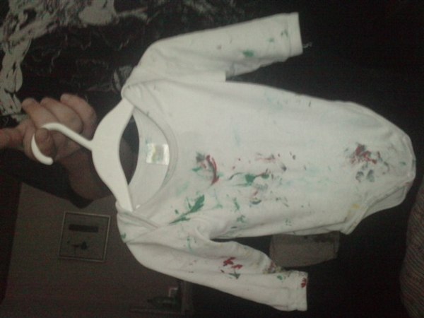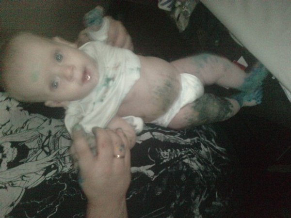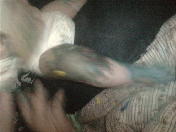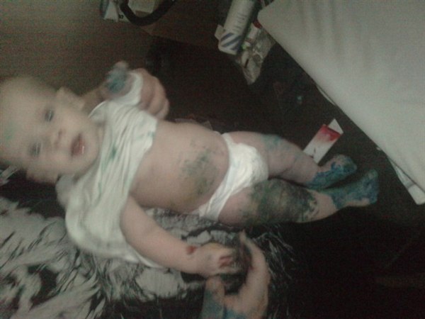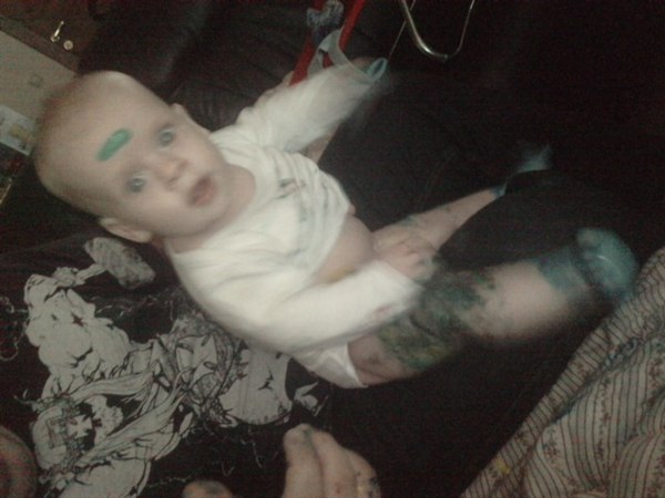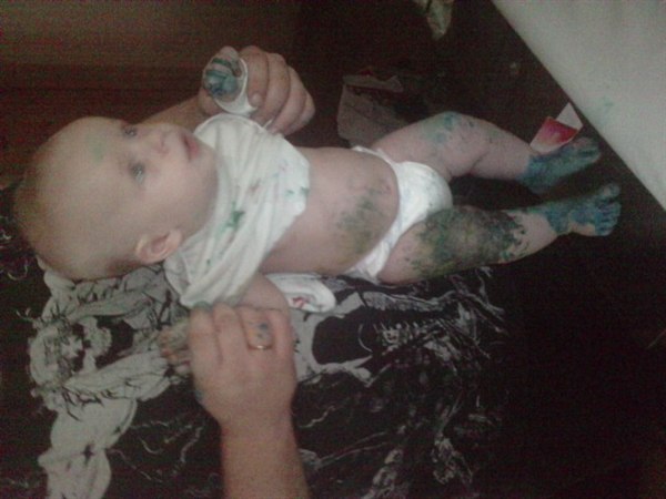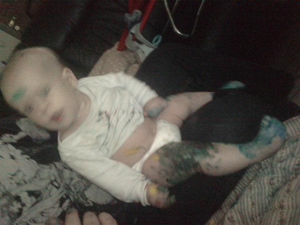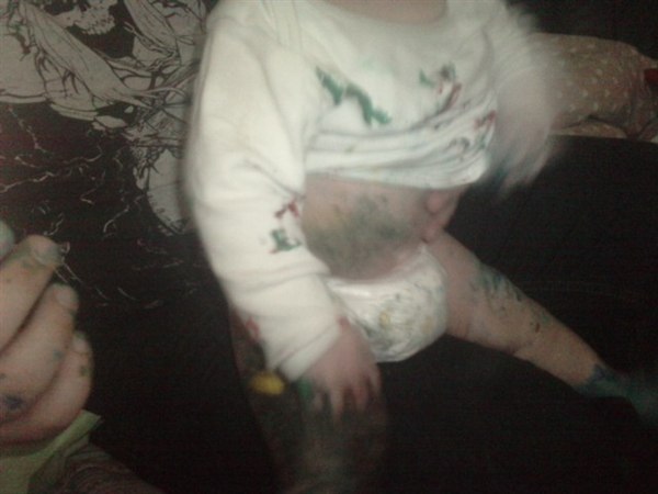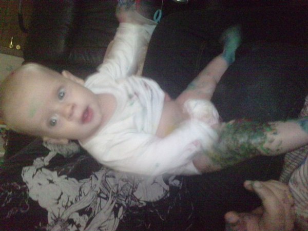 Virkelig sjovt, maling på os alle tre og to bade skulle der til før han var helt ren..