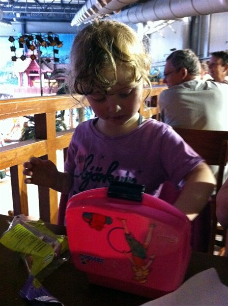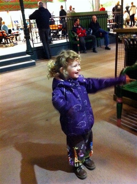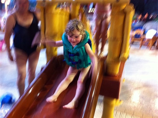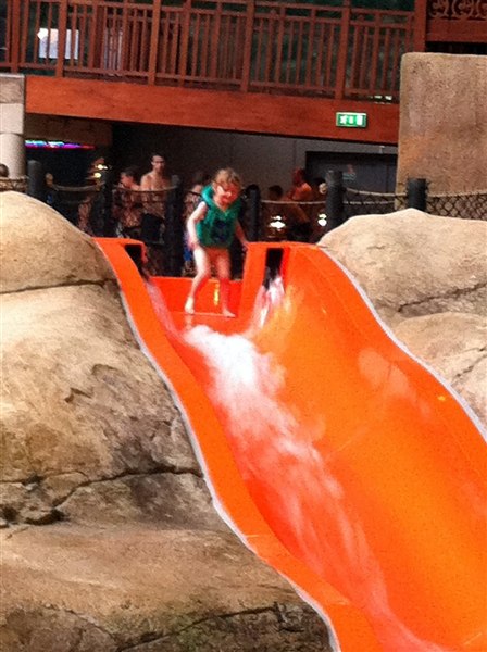 Hun skal altid lige se tingene lidt an. Men så fandt hun ud af at det ikke var så farligt... og da jeg gik op for at prøve en af de store vandrutchebaner var hun alene med mormor.... så fandt hun pludselig ud af at det SLET ikke var farligt og da jeg kom tilbage prøvede hun vandrutchebaner igen og igen!