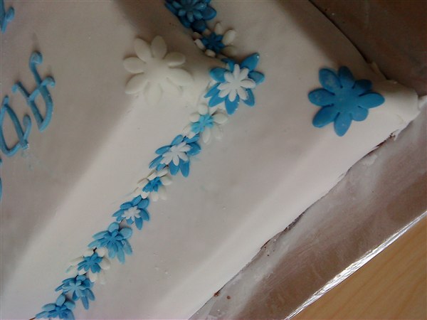 så blev det endelig tid til at lave dåbskagen efter et par øve-kager og her er så resultatet med nogle små fejl ..