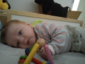 Mht. mosen, så har vi været vedholdende og givet ham tynd kartoffelmos, men ned kommer det altså ikke. Vi presser ham selvfølgelig ikke - det skal være en god oplevelse.