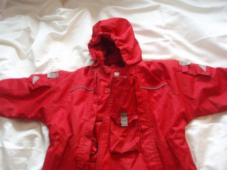 Mikkeline flyverdragt bortgives. den er brugt af 3 børn og standen er derefter, men med en smule reparation, kan den være  ok ekstra flyverdragt i børnehave/Vuggestue.