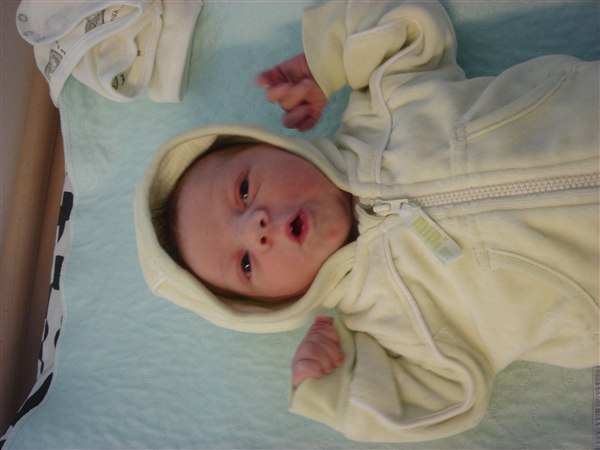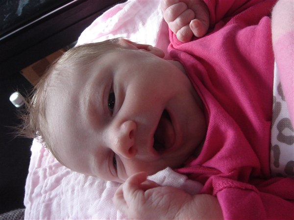 Nårh hun er sød! dejligt smil. Det er så skønt at se alle de grimasser og små smil de kommer med, når de er helt små. Man kan bare sidde og kigge på sit barn hele tiden