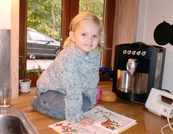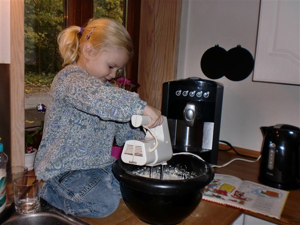Lige til slut, smider jeg et par billeder af Bianca, som laver pandekage-dej...