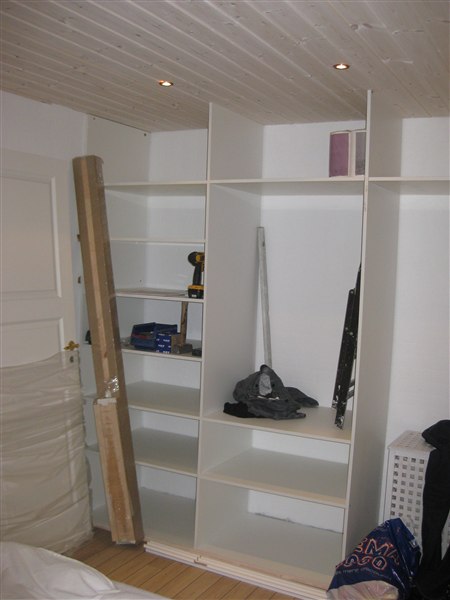 Tulle Mus skriver: Det er da lige mit skab, hvornår aflevere du det... Har i købt hylderne eller er det en plade i har skåret til??? Hvis du forstår??Hvilke mål har du brugt på hylderne??