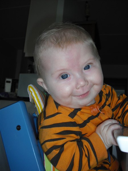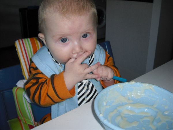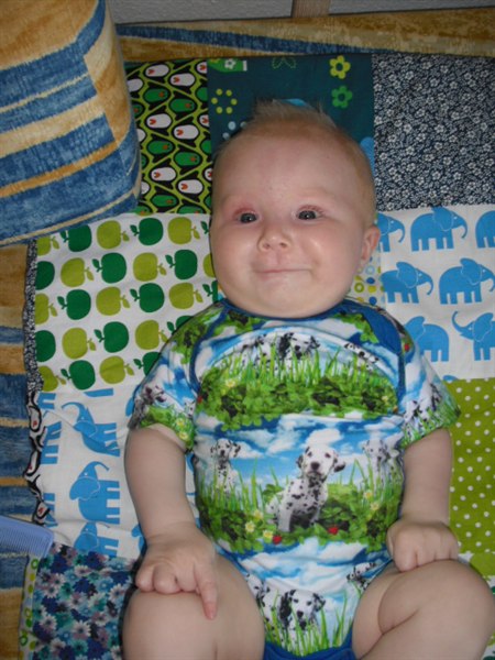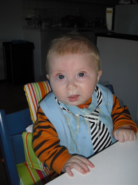 Han er godt nok ikke helt begejstret for mors hjemmelavet hirsegrød, så det står på køberen. Men alt ialt er han bare en dejlig glad dreng, med et ekstremt sovehjerte (sover fra 19-7)