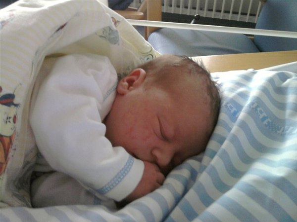 navlestrengen var omkring halsen på hende , men det fik de hurtig ordnet. Min svigerinde som var med under fødslen blev så rørt da hun kom ud. Kort efter hun var ude kom manden ind igen , det skal lige siges han ikke kan klare se hans kære har ondt så ryger han lige omkring.