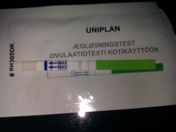 Den test der er på billedet er klart negativ. Testen vender på hovedet, men stregen til højre på billedet, skal være ligeså tydelig som stregen til venstre eller tydeligere. Man kan sagtens få to streger igennem hele cyklussen, men det betyder jo som sagt ikke de er positive..