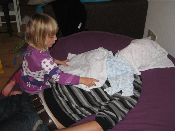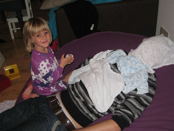 Til sidst skulle Lina selvfølgelig også være giftig - hun var bare ikke så god til det - hun blev ved med grinende at hive stofbleen væk og sige "BØØØH"