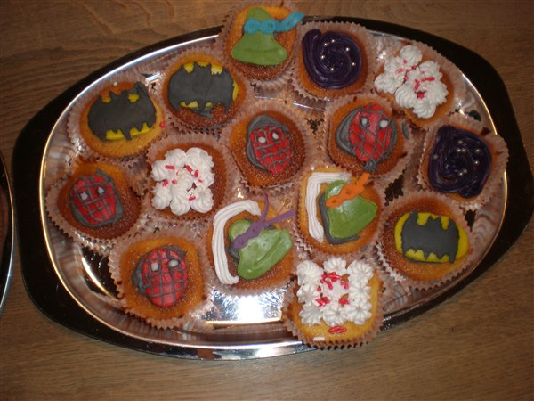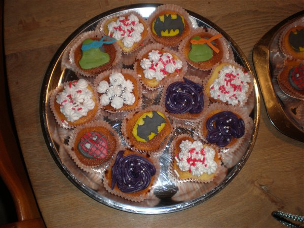 Og så har han selv valgt udvalget af kager. De små cupcakes var til børnehaven og de åd de små unger, alt og lidt til var væk... :-)