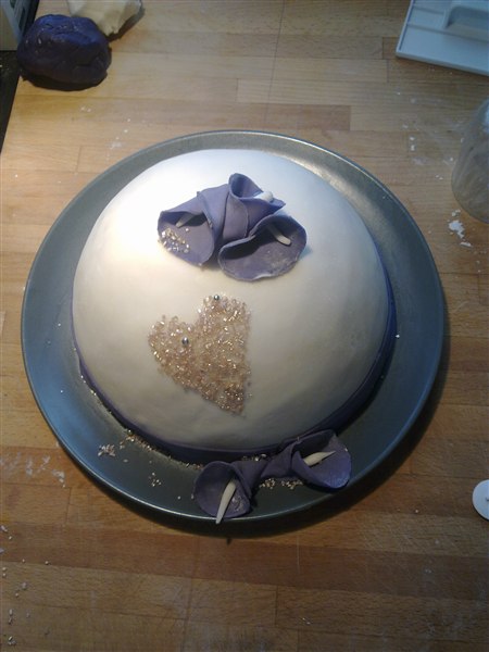 Den første fødselsdag, tøsefødselsdag hos min veninde. Hun holdte pige-middag for 4 piger og ønskede sig kage, så der også var 'til dagen efter'. På rent magisk og telepatisk vis, lavede jeg lilla pynt på, samtidig med at hun var ude og handle og købte lilla bordpynt... Sært ik? Det hele passede SÅ fint
