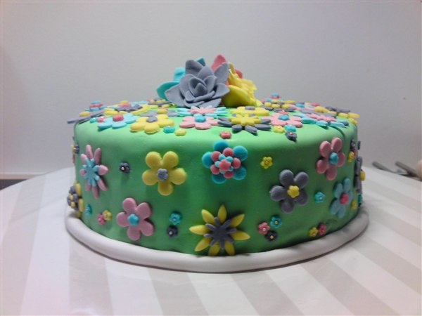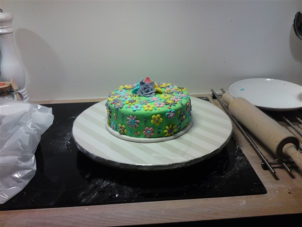 Ja, så fik jeg ENDELIG lavet en kage mere! En kage til når mødregruppen kommer i morgen. Det var ikke nemt med sygt barn, men det gik ved SKARP udnyttelse af pigens lure