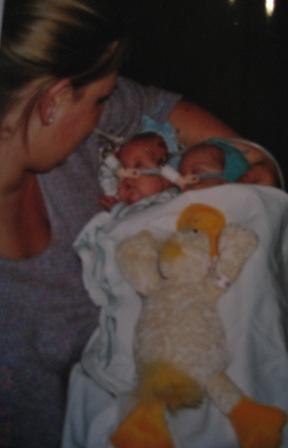 Nej jeg havde dem ikke oppe hos mig efter de blev født påga. akut kejsersnit og jeg var i narkose... De var for syge og svage til jeg måtte holde og røre dem... Så endelig kom dagen 1mdr. måtte jeg vente...