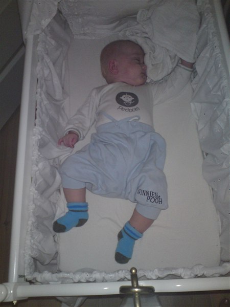 Billede nr.4.. Da vuggen var ved at blive for lille, eller var det ham der var ved at blive for stor til vuggen?