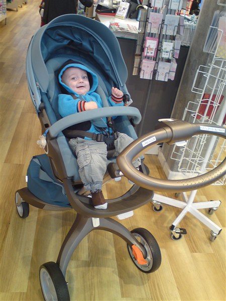 Billede nr.13.. En tur i Babysam hvor han prøvekører en stokke vogn..