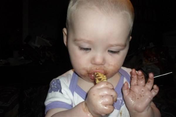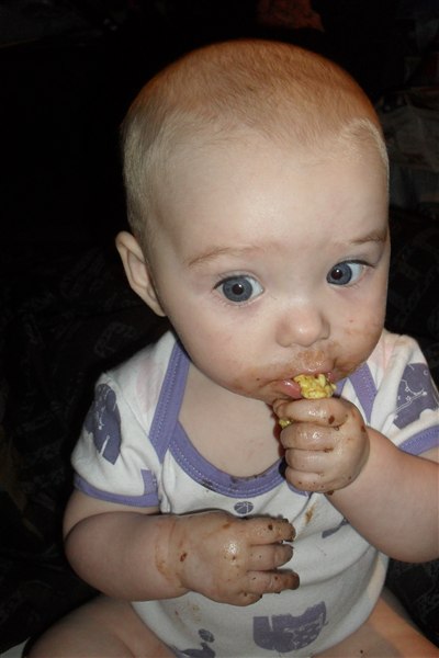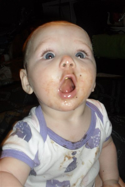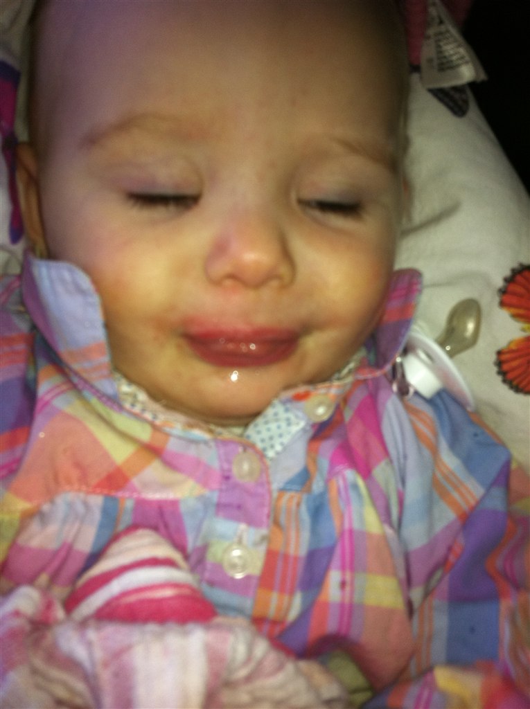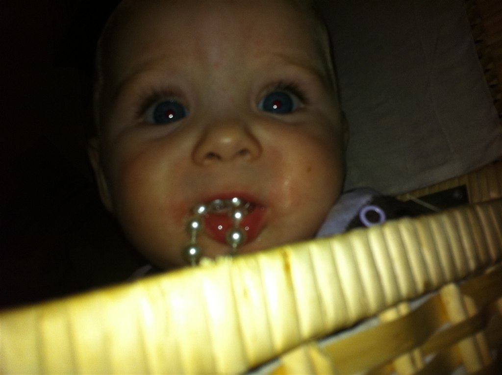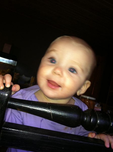 hun har fået to tænder i undermunden, Og spiser alt det bliver serveret Og så bliver der snakket og sunget/skreget hele dagen nu