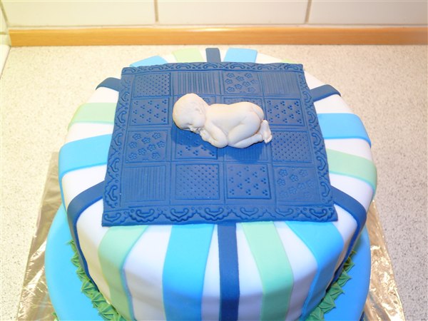 Dot D skriver: Flotte kager. De to "uhyggelige" er fede og dåbskagen er rigtig flot. Lader du striberne gå hele vejen over, eller stopper de under "tæppet"?