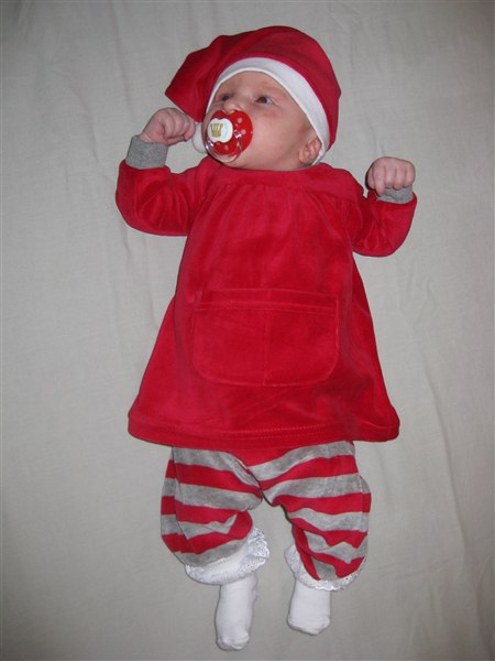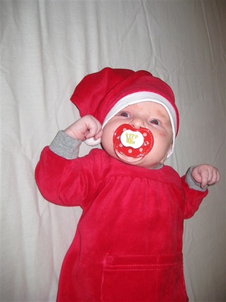 Og så skulle Madeleine lige være fotomodel for en aften så oldeforældrene kunne få et billede af den lille jule nisse... NUSER!!