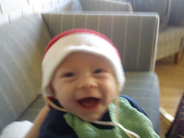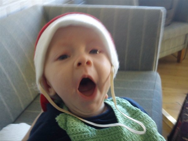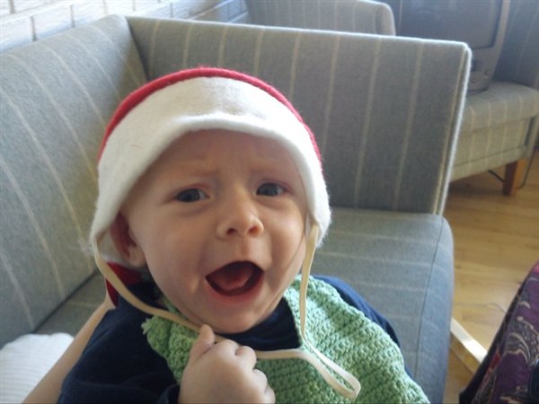 fik lige købt en nissehue til albert, og den skulle da prøves(;