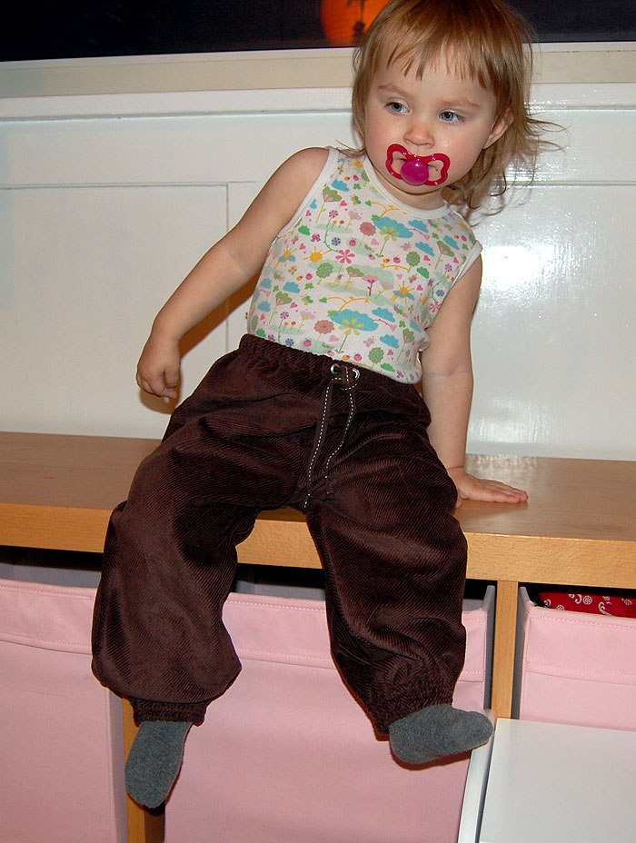 Det var vel da hun var omkring 2 år... Eller måske da hun skulle til at have str. 98...