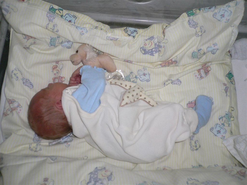 han er begyndt at sove i sin tremmeseng med alle sine bamser. han sover fra kl 8,30 til 8 hvor han lige vil have lidt og spise også sover han videre til kl 10.30