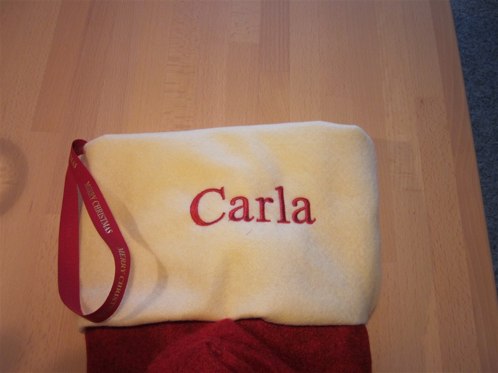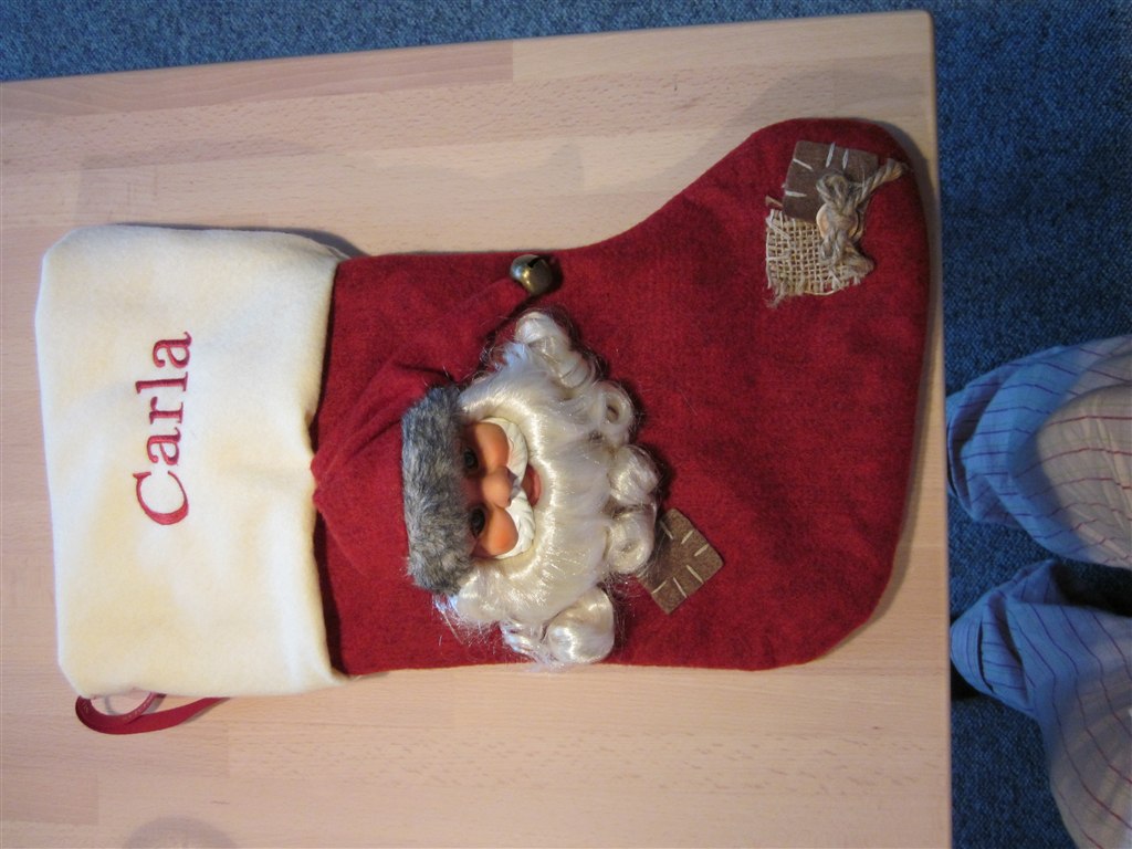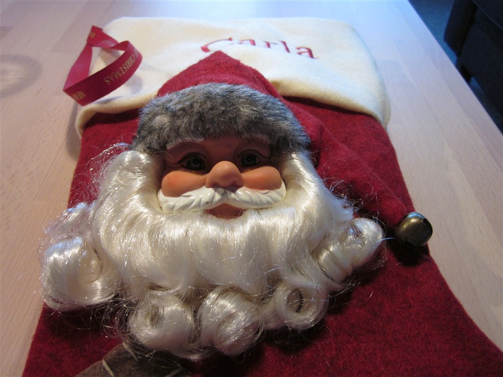 Jeg bestilte en julesok hos hende og den er bare blevet SÅ flot!!!!!! Den første sok jeg fik var der gået lidt kludder i broderiet og så var Susanne så SØD at sende mig en helt ny en!!!!!! Jeg er bare så glad for den og syntes det var så stort af hende. Se lige hvor fin den er: